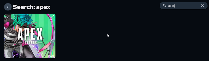 Use the search bar in the top right corner of the SignalRGB dashboard and type 'Apex Legends', then hover over Apex Legends and click 'Get'.