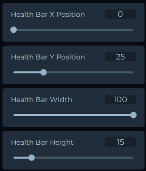 There are many settings to configure the health and sprint bar. You can adjust the bar colors, the x and y positions of the bars, and the height and width of the bars.