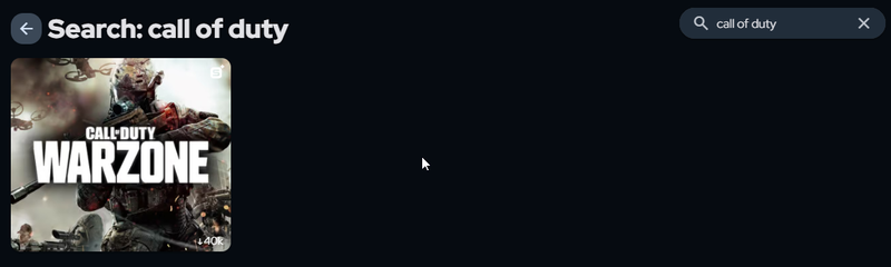 Use the search bar in the top right corner of the SignalRGB dashboard and type 'Call of Duty', then hover over Call of Duty: Warzone and click 'Get'.