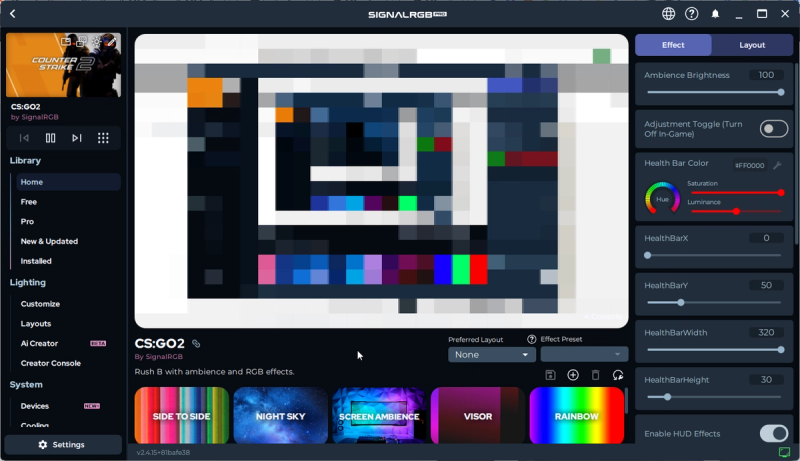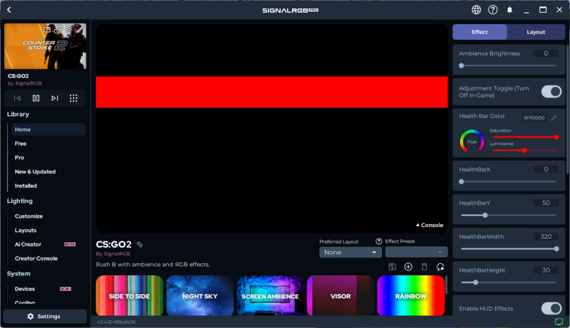At this point if you are not interested in configuring the health bar in Step 7 then disable the toggle labeled 'Enable HUD Effects'. You can now minimize SignalRGB and play Counter Strike 2, your RGB setup should start reacting to your gameplay.