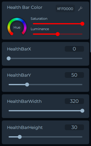 There are many settings to configure the health bar. You can adjust the bar colors, the x and y positions of the bar, and the height and width of the bar.