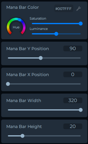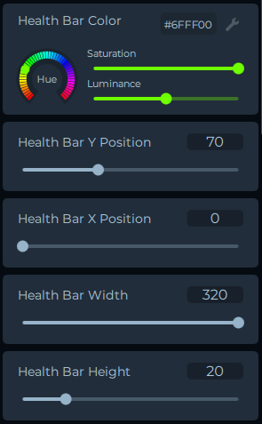 There are many settings to configure the health and shield bar. You can adjust the bar colors, the x and y positions of the bars, and the height and width of the bars.