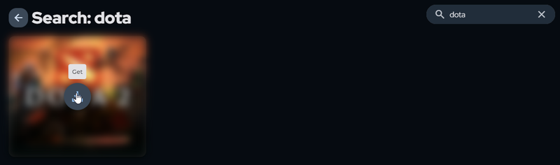 Use the search bar in the top right corner of the SignalRGB dashboard and type 'DOTA 2', then hover over DOTA 2 and click 'Get'.
