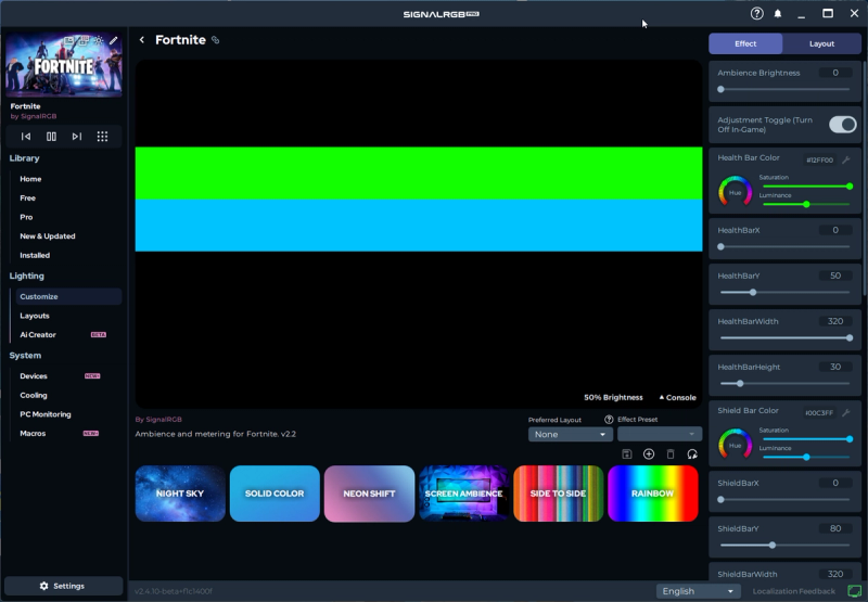 At this point if you are not interested in configuring the health and mana bars in Step 7 then disable the toggle labeled 'Enable Hud Effects'. You can now minimize SignalRGB and play DOTA 2, your RGB setup should start reacting to your gameplay.