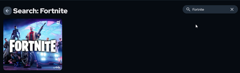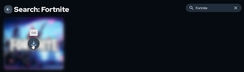 Use the search bar in the top right corner of the SignalRGB dashboard and type 'Fortnite', then hover over Fortnite and click 'Get'.