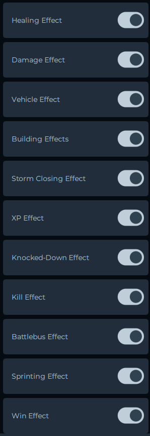 At this point if you are not interested in configuring the health and shield bars in Step 7 then disable the toggle labeled 'HUD Effects'. You can now minimize SignalRGB and play Fortnite, your RGB setup should start reacting to your gameplay.