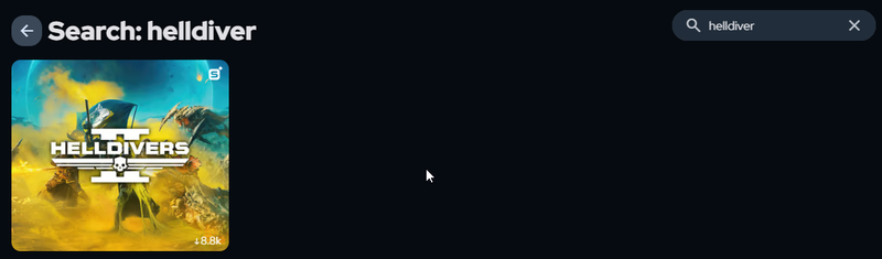 Use the search bar in the top right corner of the SignalRGB dashboard and type 'Helldivers', then hover over Helldivers 2 and click 'Get'.