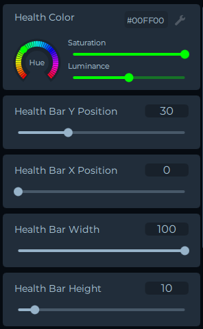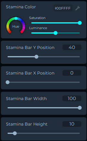 There are many settings to configure the health and stamina bar. You can adjust the bar colors, the x and y positions of the bars, and the height and width of the bars.