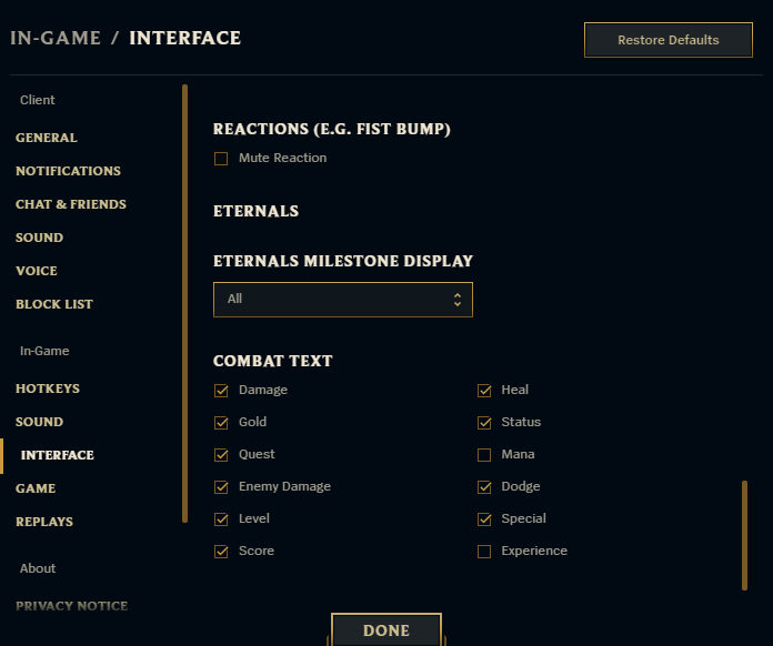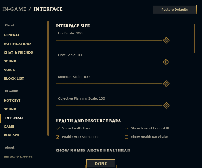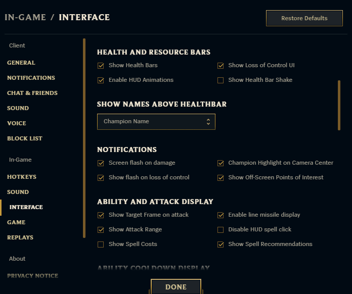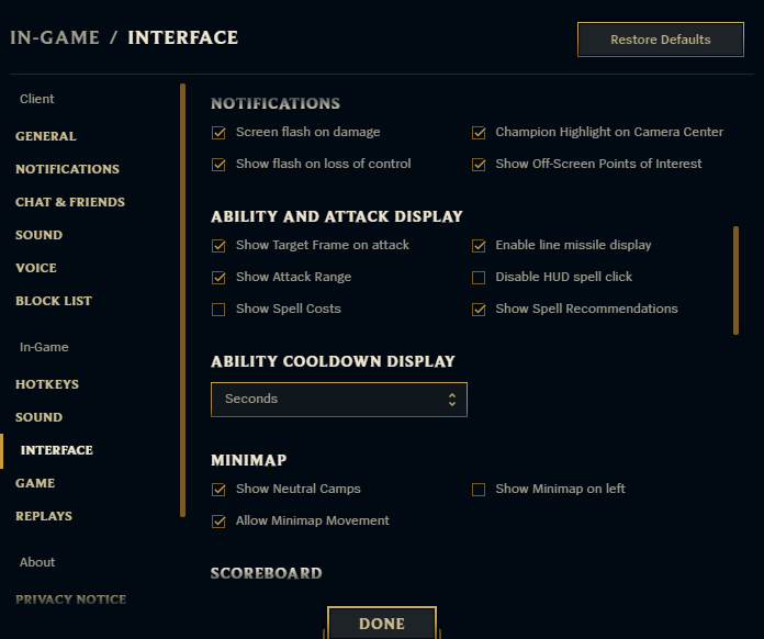 Go into your League of Legends video settings and set your game to Fullscreen. Disable any color filters such as color blind mode if applicable. Reset your game interface settings to default to ensure that the integration will function properly because SignalRGB scans the game interface in order to trigger effects, it was designed to work only for the default game interface but that may change in the future.