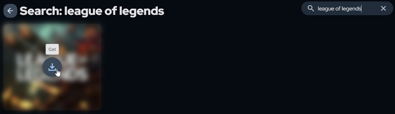 Use the search bar in the top right corner of the SignalRGB dashboard and type 'League of Legends', then hover over League of Legends and click 'Get'.