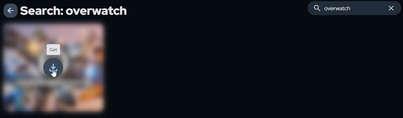 Use the search bar in the top right corner of the SignalRGB dashboard and type 'Overwatch', then hover over Overwatch and click 'Get'.