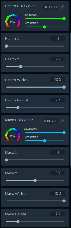 There are many settings to configure the health and mana bar. You can adjust the bar colors, the x and y positions of the bars, and the height and width of the bars.