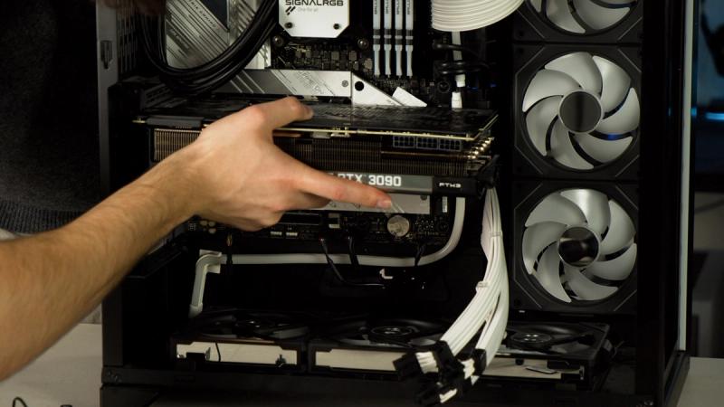 Probably the most expensive item on the shopping list will be the graphics card, most graphics cards these days have RGB included, but Iād recommend going with ASUS Strix cards if you want individual LED control in SignalRGB, other brands will be treated as one RGB zone. In general, you should buy a graphics card that makes sense with the processor youāre using. For example you wouldnāt be able to take full advantage of a 4090 if you have an i5 processor. I went with the EVGA FTW3 3090 which I picked up used for $500 dollars, itās going to pair perfectly with the processor Iām using for this build. Also, make sure that the GPU youāre getting will fit inside your case, with GPUās getting bigger and bigger itās totally possible that it wonāt fit inside your case. (image of gpu not fitting in pc on reddit). Now that weāre on the topic of things not fitting: Storage.