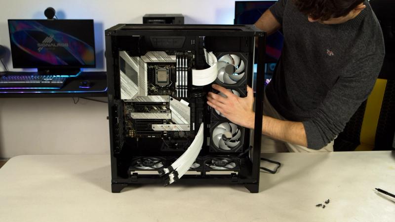 With all the controllers installed, it's time to mount the fans and the radiator.