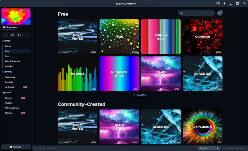 Now you can take full advantage of the hundreds of RGB effects that are available in SignalRGB. Be sure to checkout some fan favorites like Watercolor, Dark Matter, Sakura, Vapor Wave, and Calm Water. Don't sleep on the different FREE audio visualizers either!