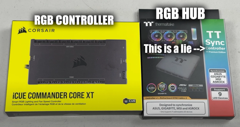 The one exception is the Corsair RGB Fan LED Hub because it's designed to work specifically with Corsair's true controllers (like the Commander Pro) as an extension of their ecosystem, not as a standalone hub.
