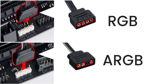 Important compatibility note: These connector types are physically different to prevent incorrect connections. Connecting a 12V RGB to 5V ARGB and vice versa can cause permanent damage.
