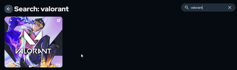 Use the search bar in the top right corner of the SignalRGB dashboard and type 'Valorant', then hover over Valorant and click 'Get'.